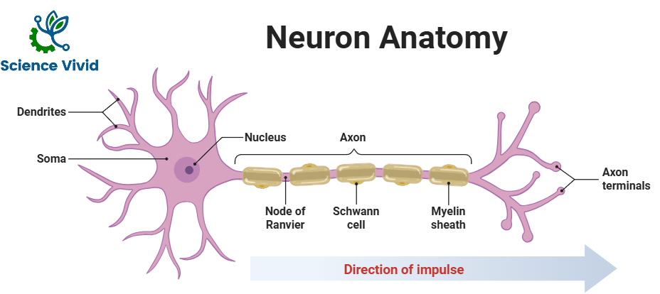 A neuron is made up of three primary elements, which can be compared to the branches, roots, and trunk of a tree: dendrites, axons, and the cell body, or soma.